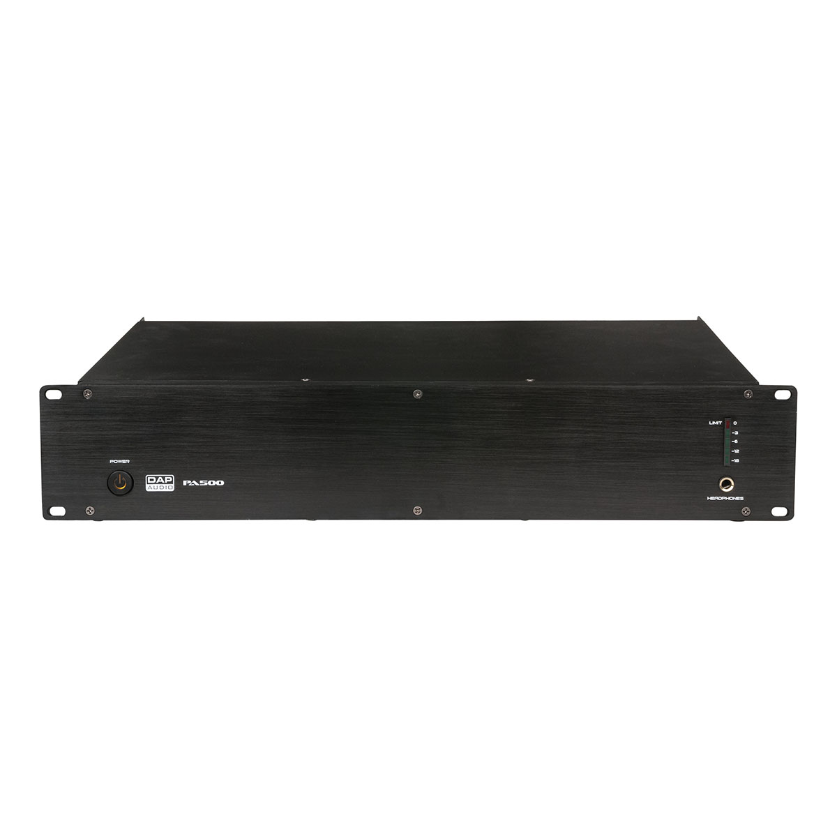 De DAP PA-500 is een eenvoudige 500W-, 100V-versterker. Dit is een betrouwbaar werkpaard dat gebruikt kan worden voor vele toepassingen. Inputs kunnen worden aangesloten op terminals, gebalanceerde XLR- of ongebalanceerde RCA-aansluitingen. Met een loop-through kun je externe audioprocessors aansluiten zoals equalizing enhancers of feedback killers. De PA-500 kan worden gebruikt als uitbreiding van een bestaand DAP 100V-PA-systeem of als verhuursysteem. Ook is een combinatie met line-mixers mogelijk in situaties waarbij 100V wordt gebruikt als uitbreiding van een commerciële audio-installatie.