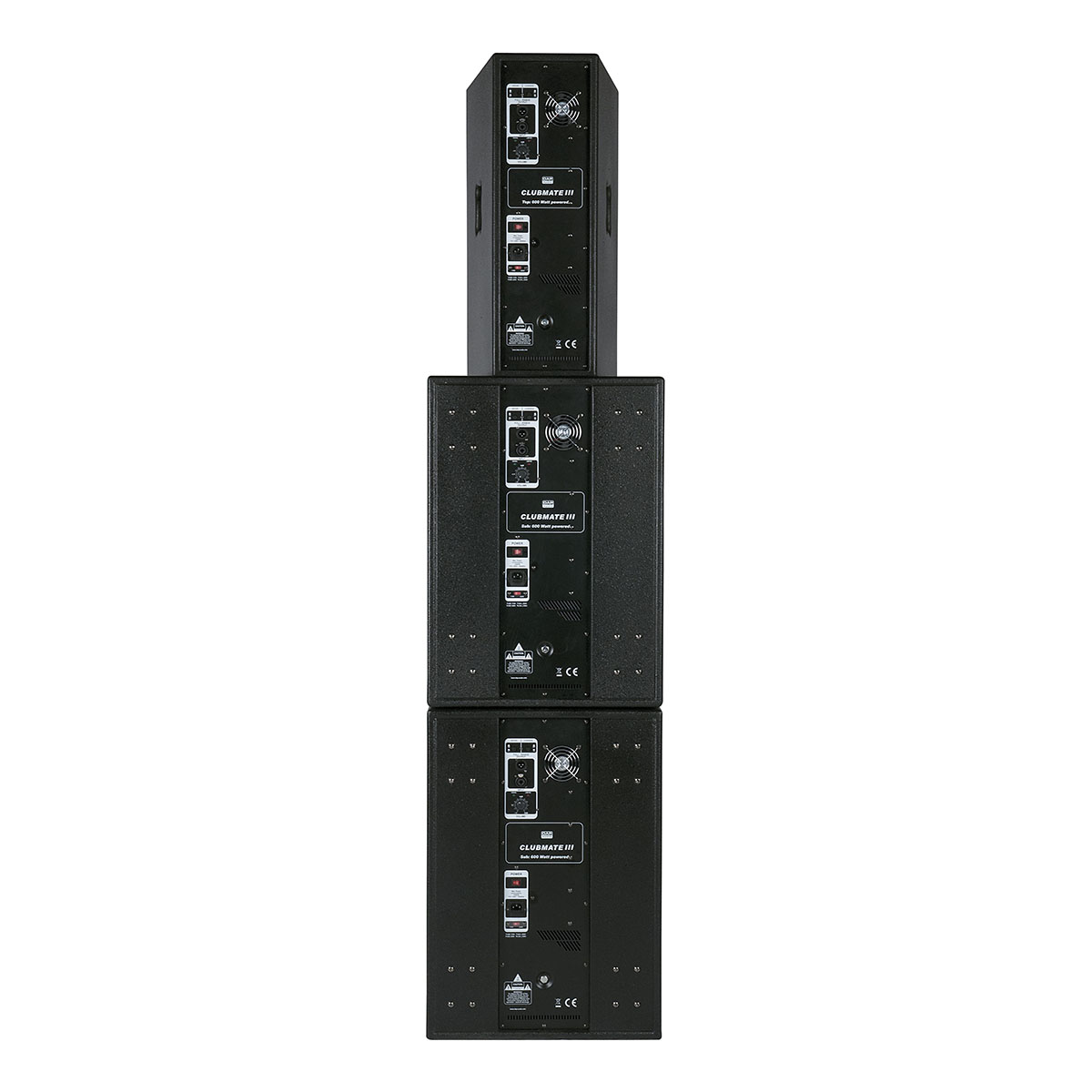 De Club mate III heeft 4 subs en 2 tops. Het is een makkelijk vervoerbaar, hoogwaardig geluidssysteem met groot vermogen voor DJ’s en bands. Eenvoudig te stapelen met maximale stabiliteit. Elke kast heeft zijn eigen ingebouwde versterker, processor, limiter en crossover-gedeelte. Speciaal ontworpen subwoofer-systeem met 15″ krachtige subwoofer met 3″ spreekspoel voor frequenties tot 38 Hz. Efficiënte 12″ mid-luidspreker met 3″ spreekspoel en tweeter met 1,75″ spreekspoel op een constant-directivity-hoorn. Deze kasten zijn afgewerkt met krasbestendige lak en stijlvolle metalen roosters.