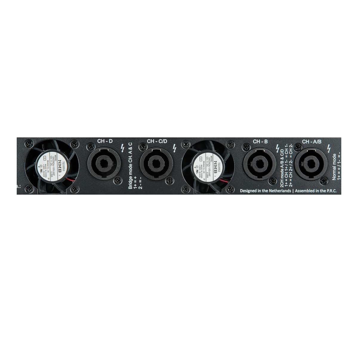 Hij heeft een clip limiter en DC-uitgangsbeveiliging om schade aan de luidspreker te voorkomen. Uitgangsoverbelasting en kortsluitbeveiliging beschermen de versterker tegen fouten, net als beveiliging tegen oververhitting en vermogensreductie bij hoge temperaturen.