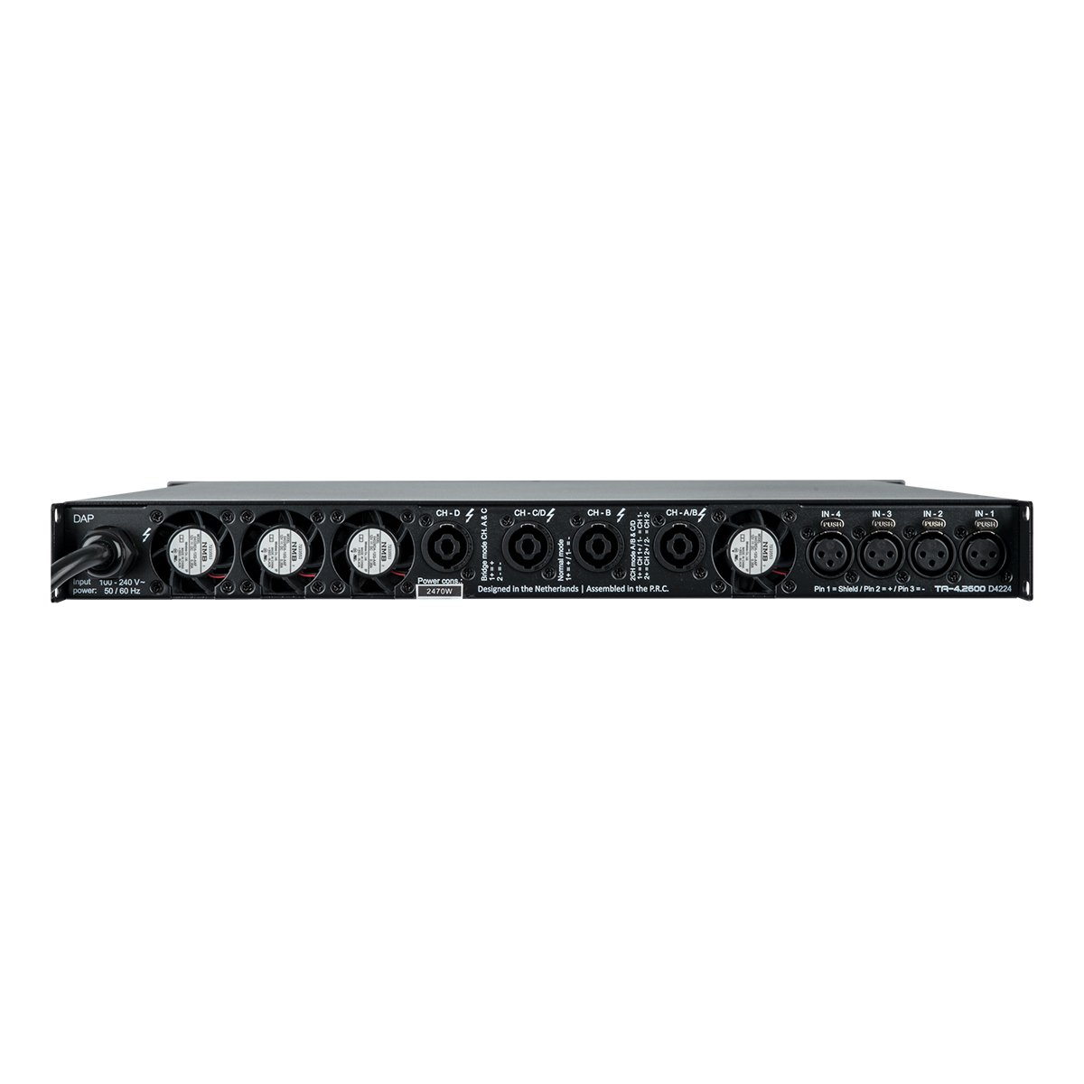 De DAP TA-4.2600 is een compacte en lichte 4-kanaals DSP-eindversterker voor touring-toepassingen. In een 1U rack levert hij 4x 2600 W in 4 ohm, kan hij 2-ohmige belastingen aansturen en kan hij worden gebruikt voor 70/100V-systemen en kan hij in brugmodus worden gebruikt voor nóg meer vermogen. Hij is ontworpen voor lage impedantie en hoge stroom en bereikt een efficiëntie van meer dan 90% met een uitstekende stabiliteit.