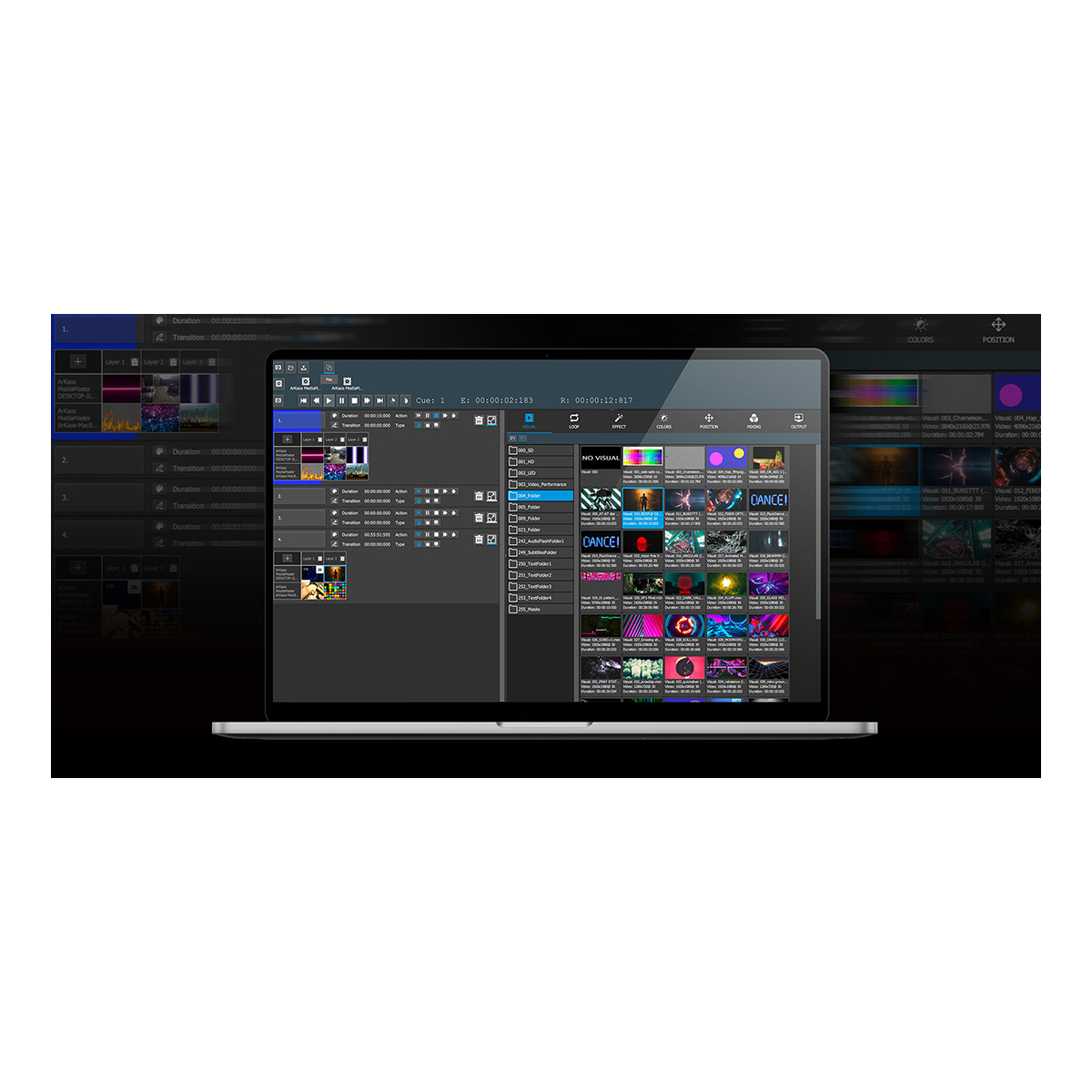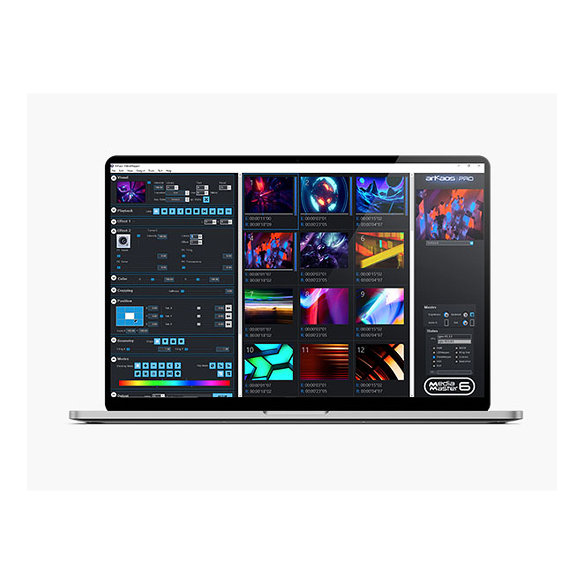 De Arkaos MediaMaster Pro 6 is een complete, intuïtieve en eenvoudig te gebruiken video besturingssoftware ontwikkeld voor middelgrote tot grote video-installatieprojecten in clubs, kerken, theaters et cetera. De Pro versie biedt 48 afspeellagen, twee effect-engines en ondersteunt DMX, Art-Net, tijdcode, CITP en Elgato Stream Deck. Daarnaast biedt hij heel veel extra functies.