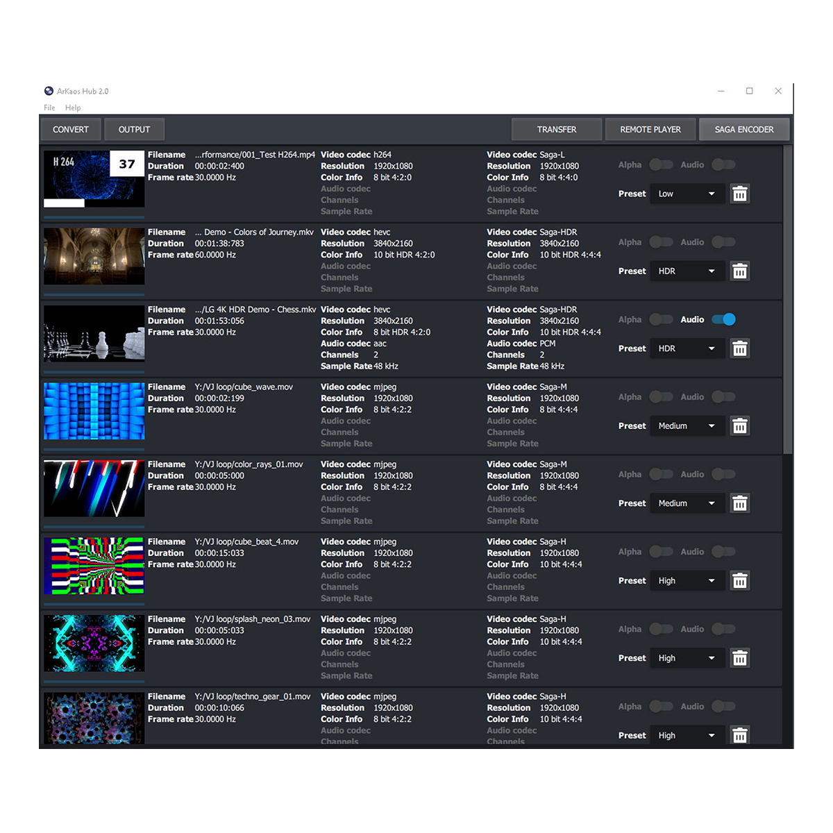 MediaMaster 6 draait de gestroomlijnde eigen ArKaos SAGA-codec met 10-bits definitie per kleur en een alfakanaal. Vergeleken met de standaard HAP-codec heeft SAGA een kleiner formaatgrootte. Dit resulteert in een hogere snelheid, de mogelijkheid om clips achteruit af te spelen en het versnelt de CPU- en GPU-rendering. Er is geen chroma re-sampling en de resolutie is ongelimiteerd. Arkaos MediaMaster 6 is beschikbaar voor zowel pc- en MAC-gebruikers.