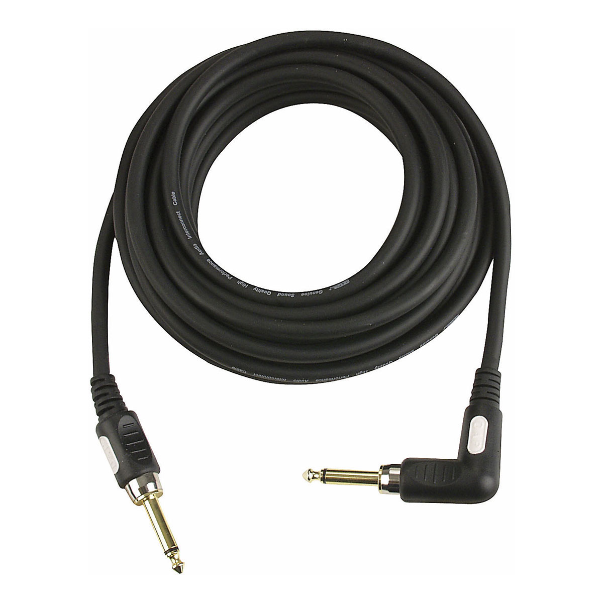 DAP FL18 gitaarkabel. De kabel heeft een dikte van 6mm en een lengte van 10 m. Aan een uiteinde is de kabel voorzien van een 90 graden haakse Jack.