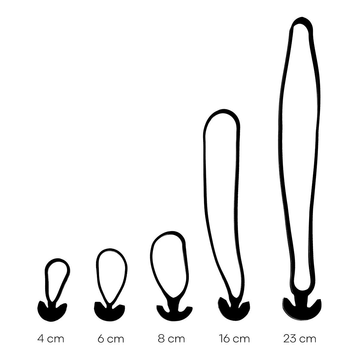 Verkrijgbaar in vijf verschillende lengtes: 4, 6, 8, 16 en 23 cm. Verpakking bevat een set van 50 stuks.