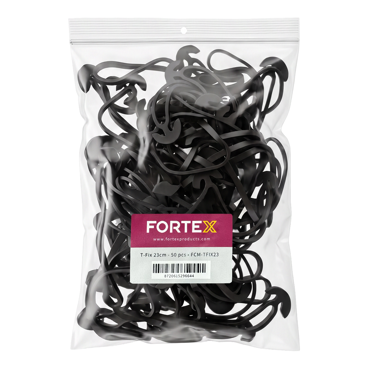Deze sterke FORTEX rubberen T-FIX elastieken zijn zeer duurzaam, flexibel, herbruikbaar, en bovenal laten ze geen lijmsporen achter op de kabels. Het sluit- en openingssysteem is zeer gemakkelijk in gebruik en biedt een lange levensduur.