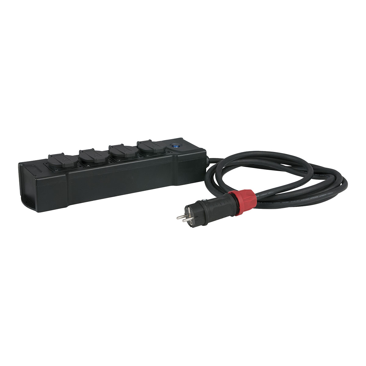 De PowerBOX 4C heeft een 1,5 m voedingskabel met rubberen mannelijke Schuko-aansluiting en 4 Schuko-voedingsuitgangen.