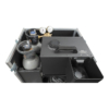 Flightcase voor Showtec Mistique inclusief 2 speciale compartimenten voor 6Kg stalen gasflessen naast het apparaat, een accessoire compartiment voor reserve vloeistoftanks onder het apparaat en een lade voor de montage van een podiumventilator.