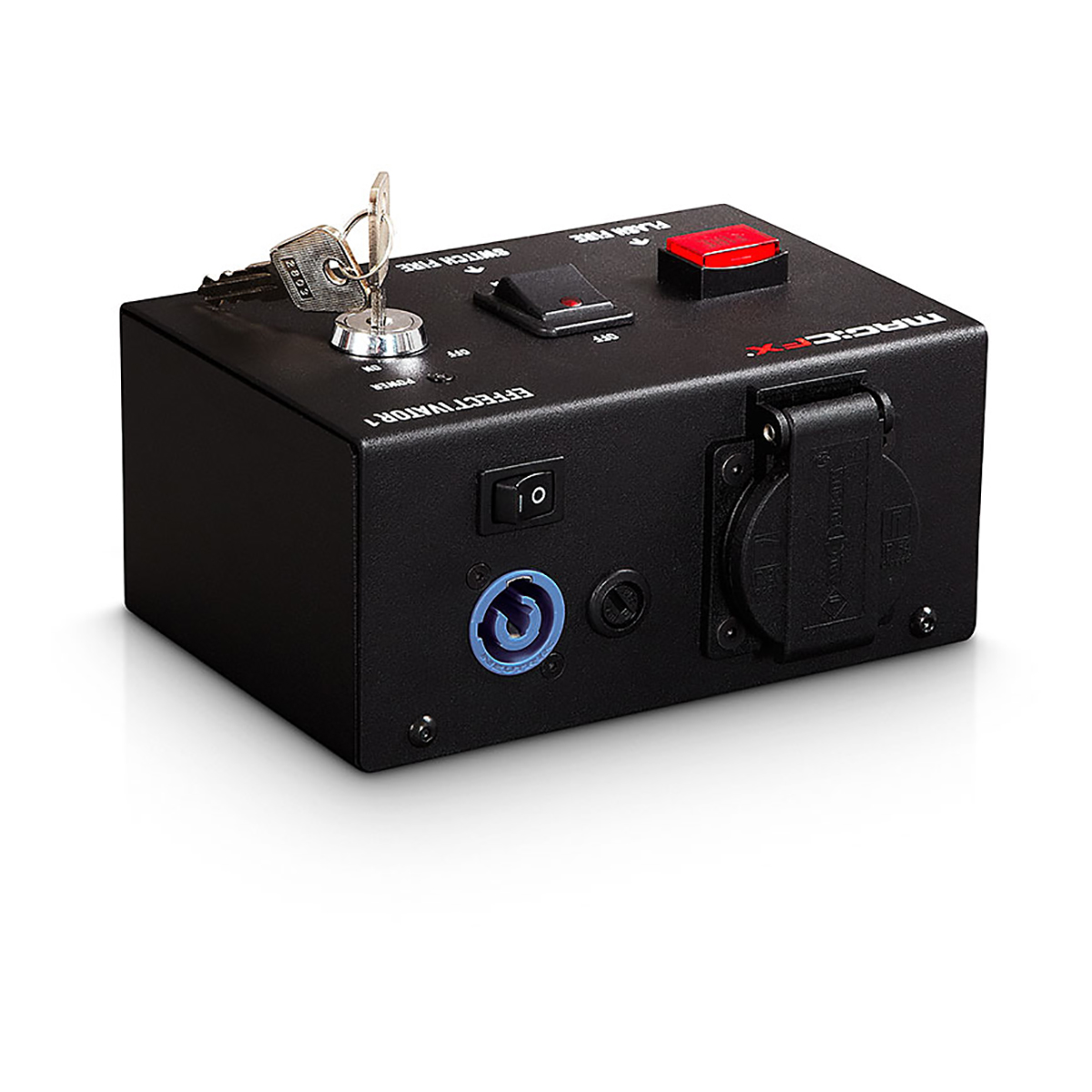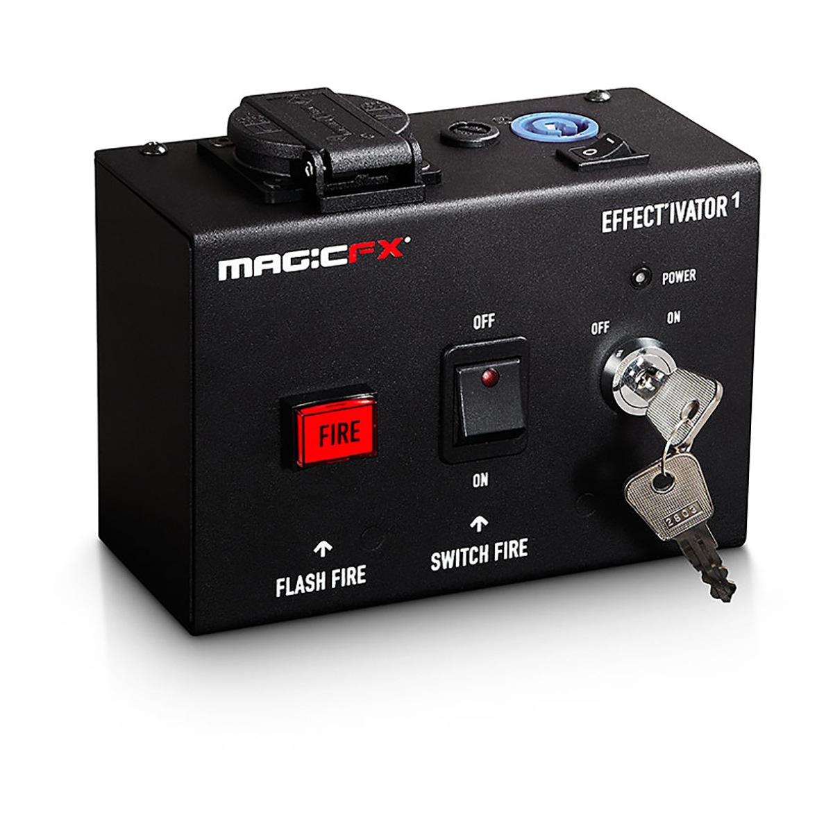 Bedien MK1-producten zoals de MAGICFX® Power Shot I en MAGICFX® CO2 Jet I met de MAGICFX® Effect’ivator 1. Deze 1-kanaals controller is uitgerust met een sleutelschakelaar en een FIRE-knop om FX te schieten.