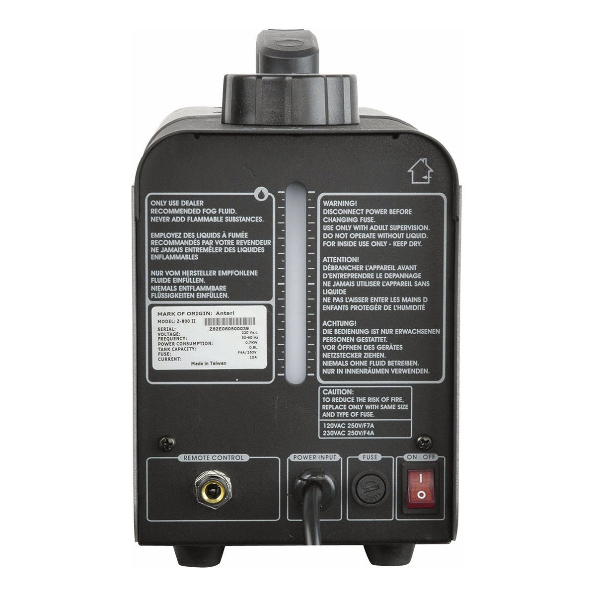 Z-800MKII is een nieuw technologisch ontwerp van Antari, dat voldoet aan de mobiliteits- en draagbaarheidseisen. Dit is een ideale machine voor gemakkelijk gebruik. Perfect voor kleine locaties, zoals DJ-opstellingen. De Z-800MKII kan in de modi draadloos, timer of standalone bediend worden. De opbrengst is constant. Met een korte opwarmtijd van slechts 100 seconden, produceert de Z-800MKII een stabiele en aanhoudende misttoevoer zolang als nodig is.