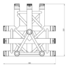 Deze FORTEX FX33-T51 is een 5-weg T-stuk. De truss wordt gekoppeld door middel van een conische koppelingen welke compatible is binnen de Eurotruss range. De hoofdbuizen hebben een doorsnede van 50 mm en een wanddikte van 2 mm, de spijlen zijn 20 bij 2 mm dik.