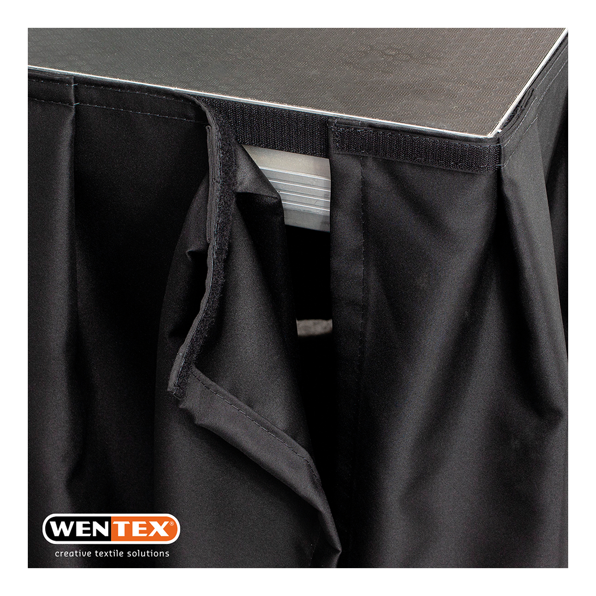WENTEX® Stage Skirt MCS 8.85 oz/yd² Zwart – 25′ x 16″ (B x H) – geplooid