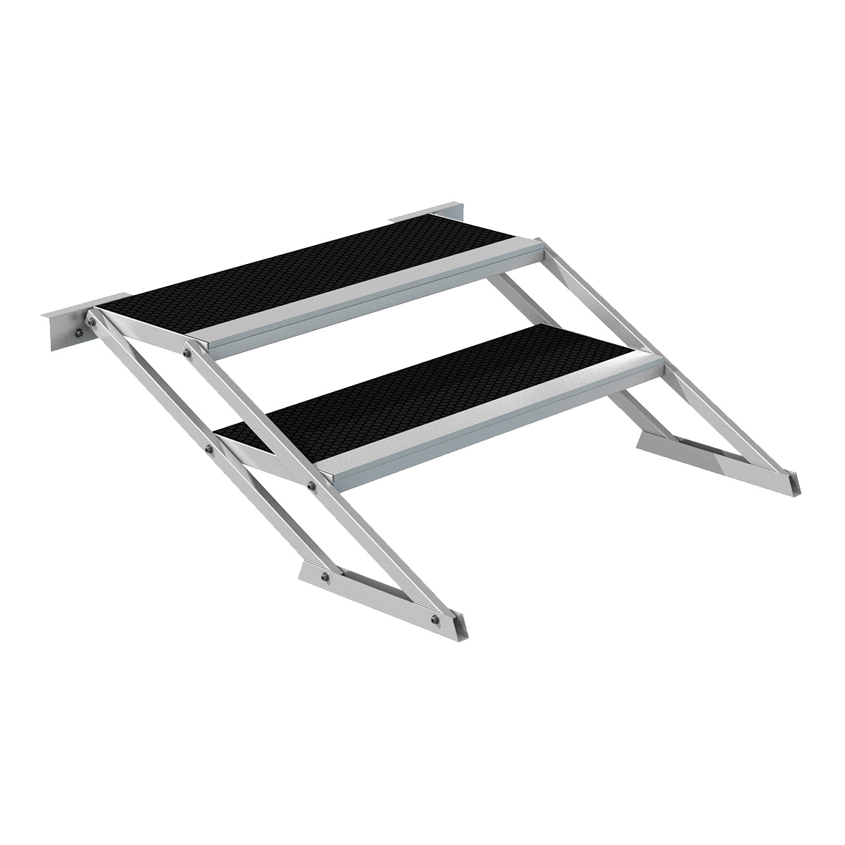 De verstelbare trappen zorgen voor een snelle en eenvoudige montage. Ze zijn gemaakt van heavy-duty stalen profielen. De treden zijn gemaakt van plywood en hebben onze speciale ”Hexa” anti-slip coating om maximale grip te garanderen, waardoor het geschikt is voor zowel binnen en buiten gebruik.