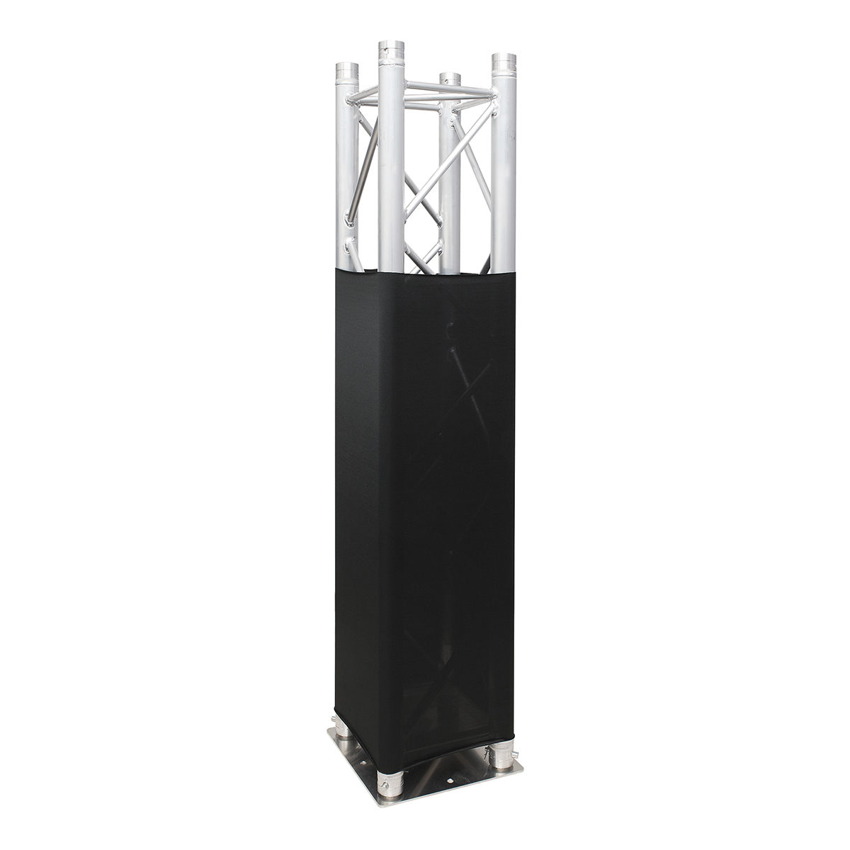 Het polyester stof is wasbaar en vlamvertragend volgens DIN 4102 B1. Houd er rekening mee dat de hoes eerst op de truss lengte moet worden gemonteerd voordat je de truss gaat opbouwen.