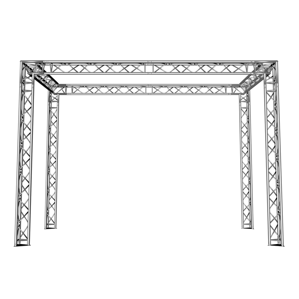 Deze FORTEX FX33 beursstand carré is opgebouwd uit verschillende driehoekige truss onderdelen van de FORTEX FX33 serie. Deze constructie heeft een afmeting van 5x3x3,5 meter (buitenmaat).