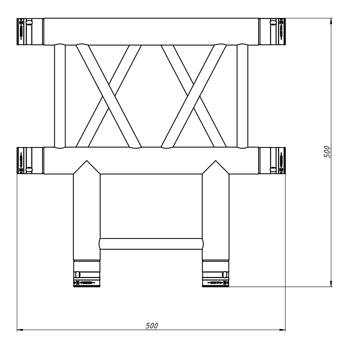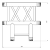 Deze FORTEX FX34-T35 is een 3-weg T-stuk en is afgewerkt met een zwarte fijnstructuur poedercoating (RAL9005). De truss wordt gekoppeld door middel van een conische koppelingen welke compatible is binnen de Eurotruss range. De hoofdbuizen hebben een doorsnede van 50 mm en een wanddikte van 2 mm, de spijlen zijn 20 bij 2 mm dik.