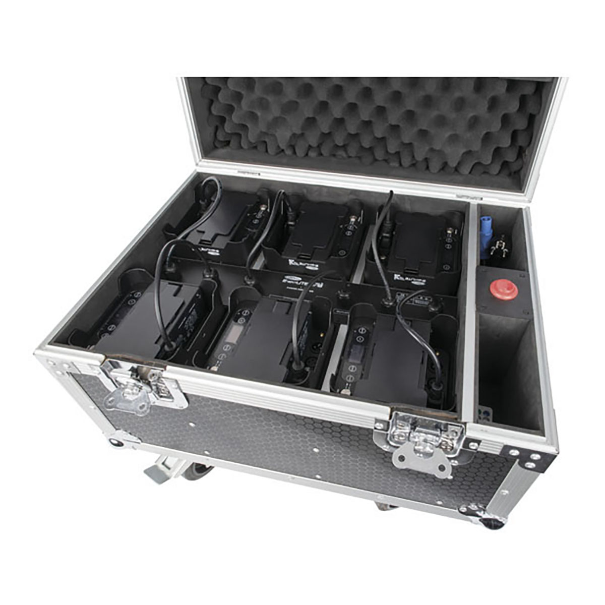 De EventLITE Q6 Set is de ideale oplossing voor verhuur. Hij bestaat uit zes EventLITE 4/10 Q6 en een IR-afstandsbediening in één compacte flightcase. De IR-afstandsbediening is handig voor een snelle, gemakkelijke en gesynchroniseerde set-up. De spots kunnen in de flightcase worden opgeladen met de ingebouwde oplader.