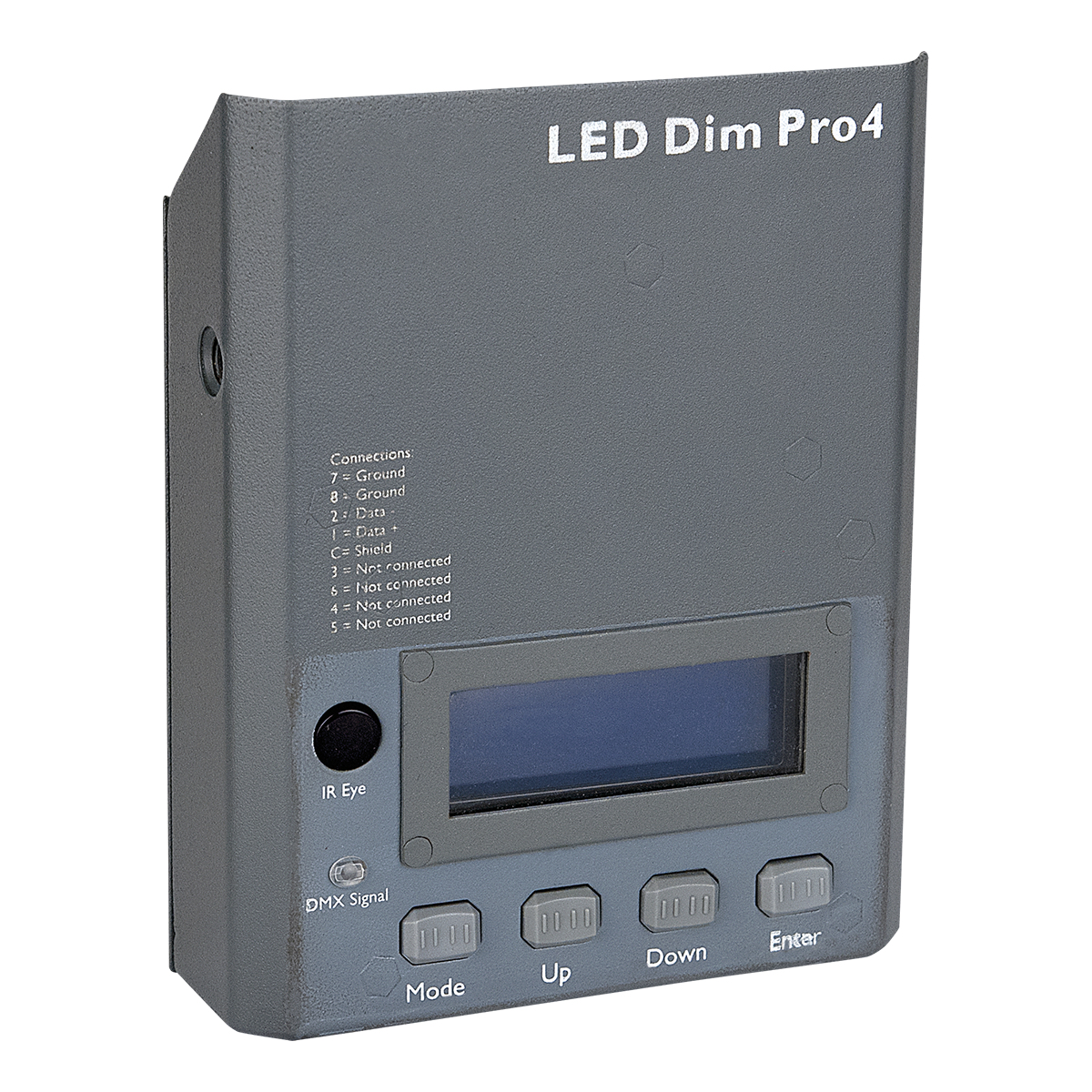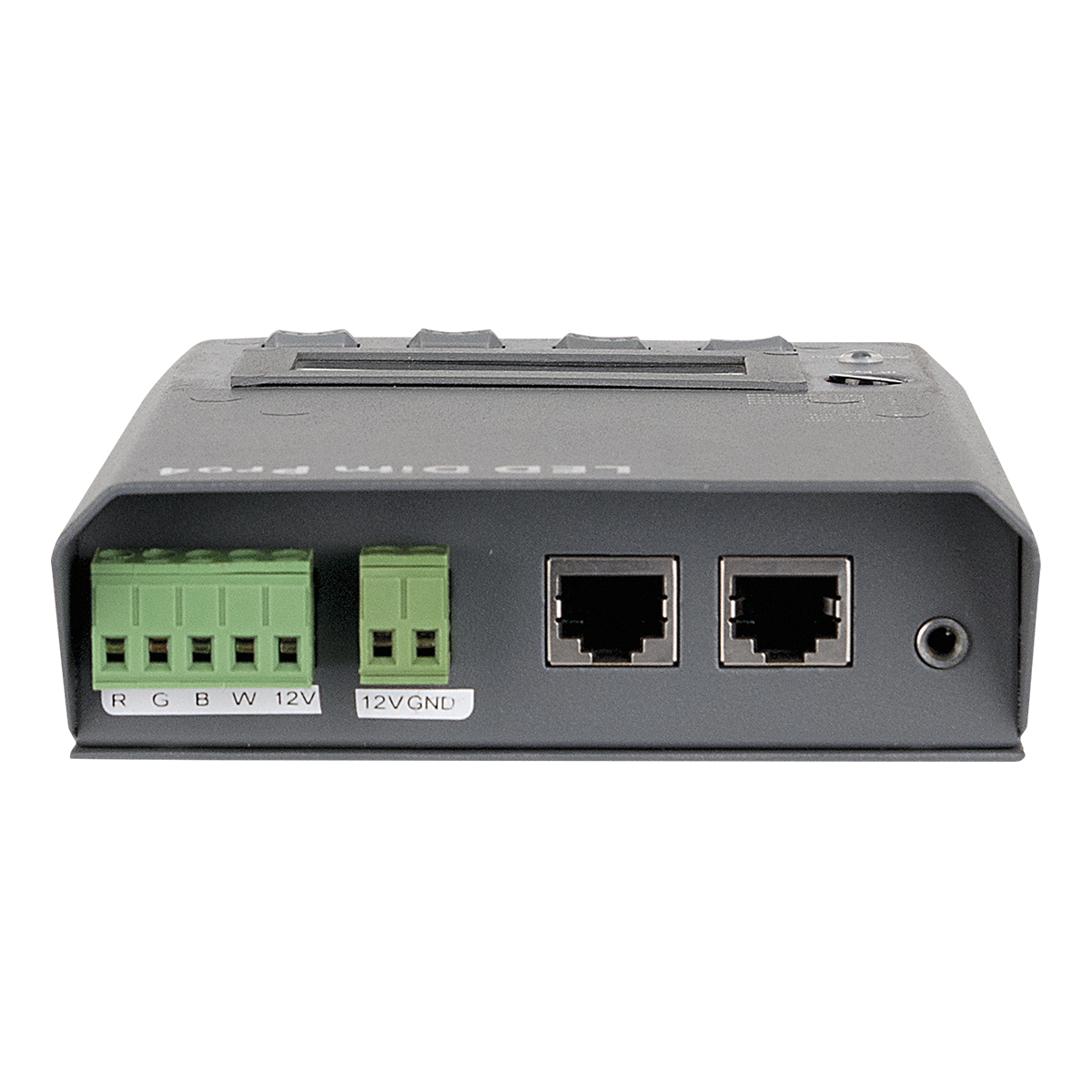 De LED-Dim Pro is een zeer gebruiksvriendelijke LED-dimmer voor RGB- en RGBW-strips. Het kan gebruikt worden om constante spanning LED-strips van 12V of 24V met DMX te bedienen. Naast de DMX-bediening kan het ook worden gebruikt als een standalone-controller voor één scene of chase. Deze programmeerbare scene of chase wordt actief wanneer er een DMX-storing optreedt. De interface is zeer gebruiksvriendelijk door het menu met groot scherm en de verschillende beschikbare talen (NL, ENG, DU). Het kan 20A met 12V en 20A met 24V verwerken. U kunt het bijvoorbeeld voor 4 x 5A, 2 x 8A of 3 x 6A gebruiken, zolang de totale belasting niet de 20A overschrijdt en de kanaalbelasting de 8A niet onderschijdt. Het ingangsvermogen wordt door een externe (optionele) voeding geleverd, die kan variëren van 12V tot 24V, afhankelijk van de aangesloten LED-strip.