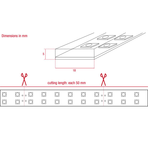 | Snijlengte | 5 cm (12 LED's) = 0,96W |