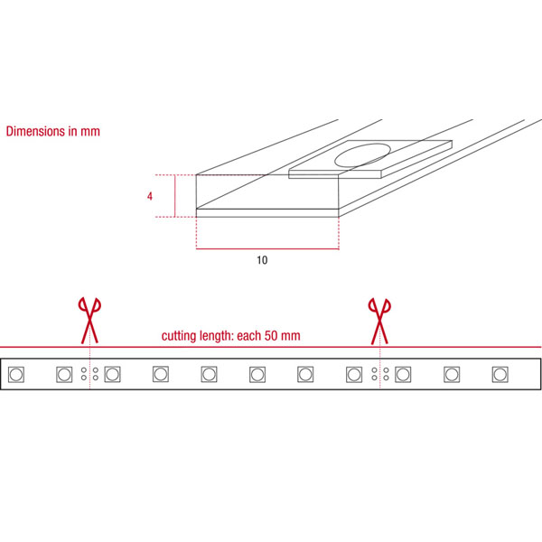 | Snijlengte | 5 cm (6 LED's) = 0,72W |