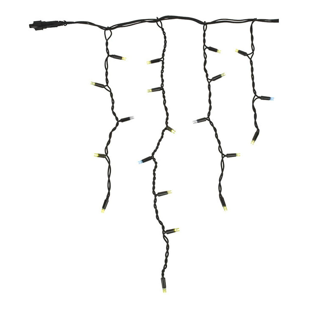 Het Showtec Koppelbaar Rubber FX IJspegel LED Lichtsnoer WW heeft talrijke strings in verschillende lengtes die van het hoofdsnoer naar beneden hangen, zoals ijspegels in de winter. Het snoer geeft een zeer fraai effect aan je feest- of seizoensdecoratie. Het heeft 80% statische warmwitte LED’s en 20% willekeurig knipperende koudwitte flits-LED’s. Dankzij de stevige rubberen kabel en IP65-classificatie is het ijspegel lichtsnoer geschikt voor tijdelijk gebruik buitenshuis. Tot 20 lichtsnoeren kunnen in serie worden aangesloten op één voedingskabel. Een speciale voedingskabel wordt meegeleverd.