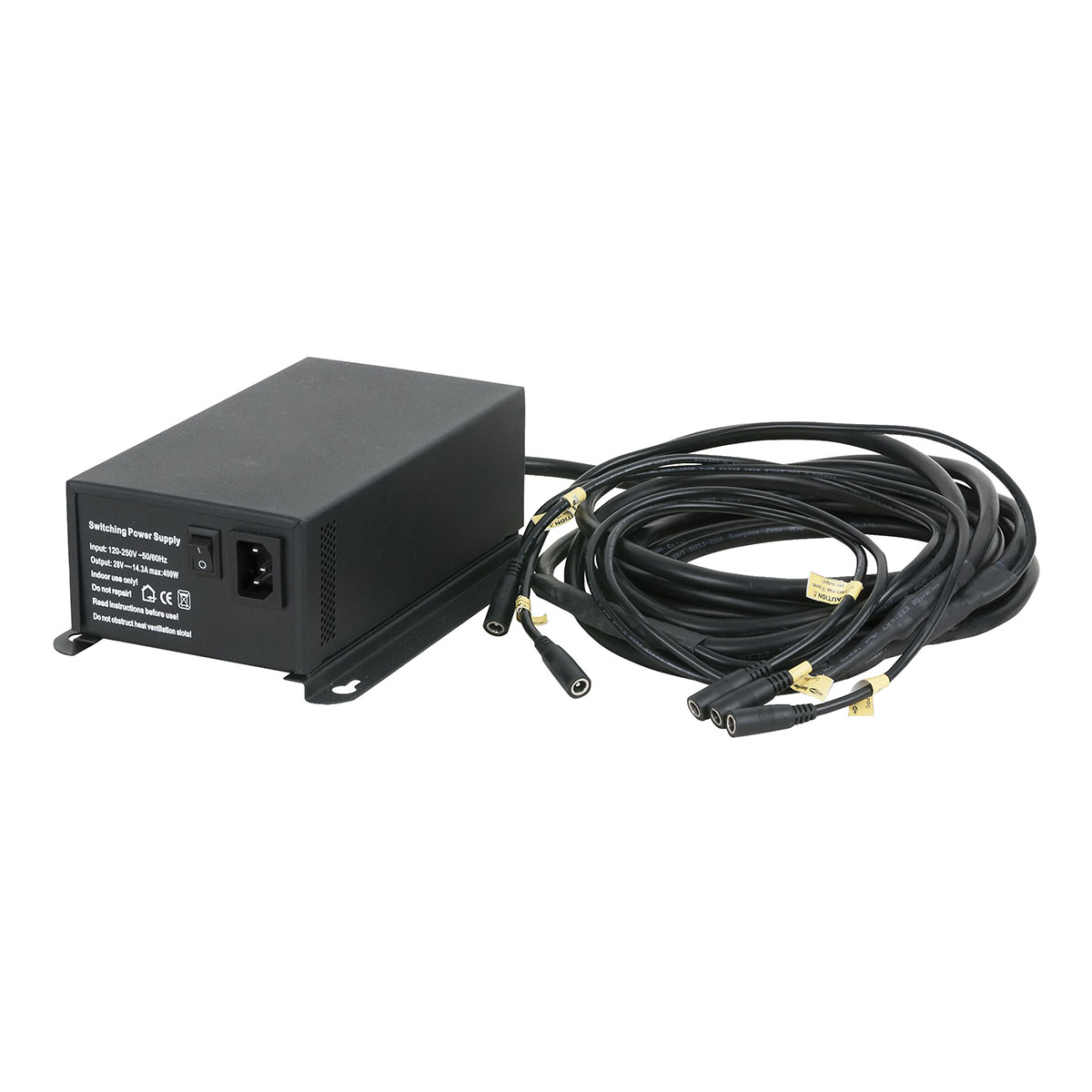 Speciale stroomvoorziening voor de Dansvloer Sparkle RGB. Het heeft een lange 6m lange kabel om genoeg ruimte te creëren tussen de dansvloer en de PSU. De kabel is verdeeld in 5 afzonderlijke uitgangen en elke uitgang kan maximaal 9 panelen per stuk verwerken. Het totaal aantal panelen dat op één voeding kan worden aangesloten is 45. De kabel is verdeeld in 5 afzonderlijke uitgangen en elke uitgang kan maximaal 9 panelen verwerken.
