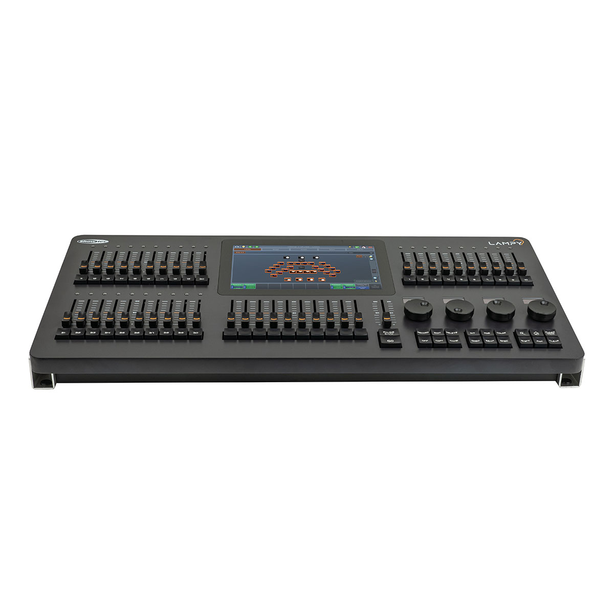 Indien 10 multifunctionele faders en 10 playback faders met cue-knoppen voldoende zijn voor je activiteiten, raden we je aan om onze Lampy 40 te bekijken met 10 in plaats van 30 multifunctionele faders met behoud van 9 geheugenpagina’s voor voldoende opslagruimte.
