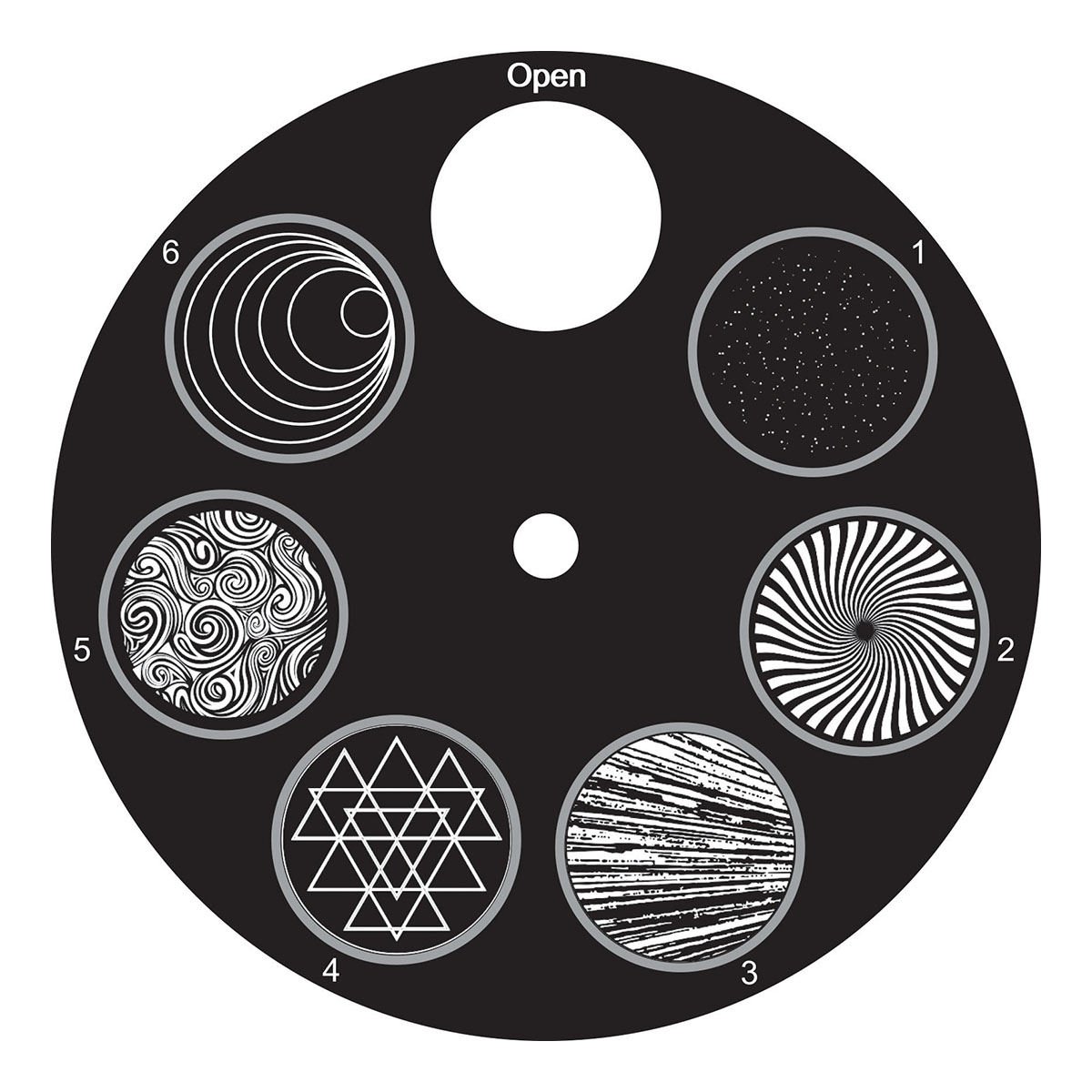 | Gobo-wiel 1 | Draaiend, 6 glas |
