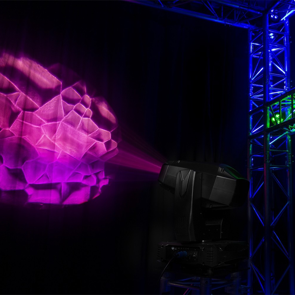 - Gobo Wiel 1: 9 gobos + open + bi-directional flow effect