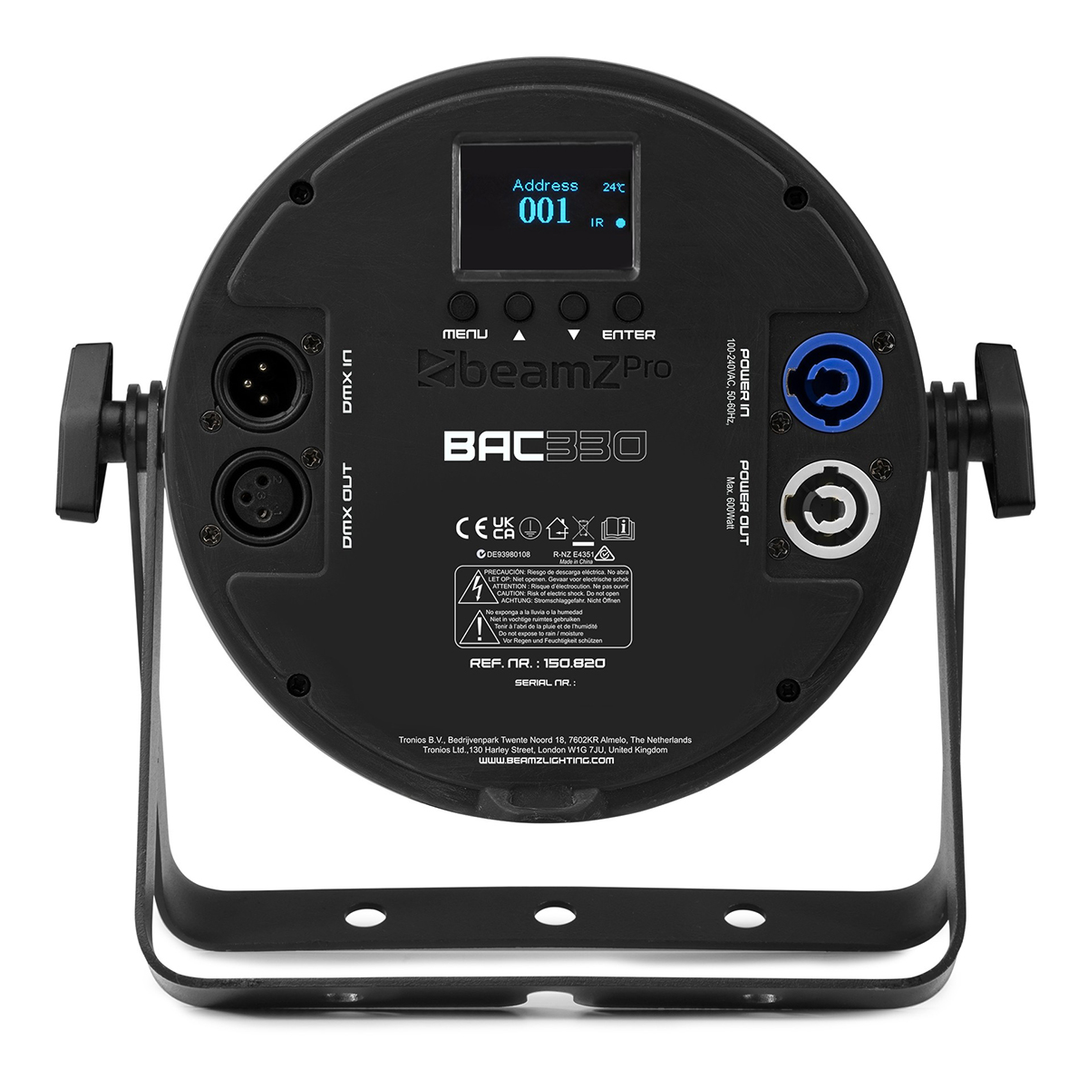 Deze veelzijdige LED PAR is geschikt voor zowel DMX-bediening als standalone-gebruik, waardoor hij naadloos integreert in elk lichtsysteem. Via het OLED-display met 4 toetsen kunnen instellingen snel en intuïtief worden aangepast. Met keuze uit 4, 6, 8 of 9 DMX-kanalen biedt de BAC3-serie maximale flexibiliteit in programmeerbaarheid, ondersteund door voorgeprogrammeerde lichtshows en een sound-activated modus met instelbare gevoeligheid. Of je nu kiest voor handmatige bediening, DMX-besturing of de Master/Slave-functie voor gesynchroniseerde effecten, deze LED PAR levert altijd indrukwekkende resultaten.