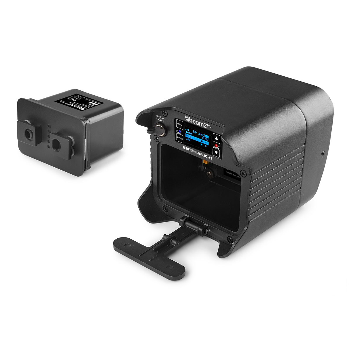 De BBP54 is een compacte accu-par, ideaal voor gebruik als accent- en uplighting. De BBP54 is IP65 geclassificeerd en zeer geschikt voor binnen- als buitengebruik. De Par is uitgerust met 4 super heldere 12W RGBAW-UV LED’s en wordt geleverd met een vervangbare batterij die tot 15 uur meegaat wanneer deze volledig opgeladen is, natuurlijk wel afhankelijk van kleur en intensiteit. De verstelbare voet kan in diverse posities worden afgesteld zodat de Par ook in verschillende hoeken kan projecteren. De BBP54 kan op verschillende manieren communiceren, via IR en via draadloze DMX. De units zijn hierdoor eenvoudig aan elkaar te koppelen.